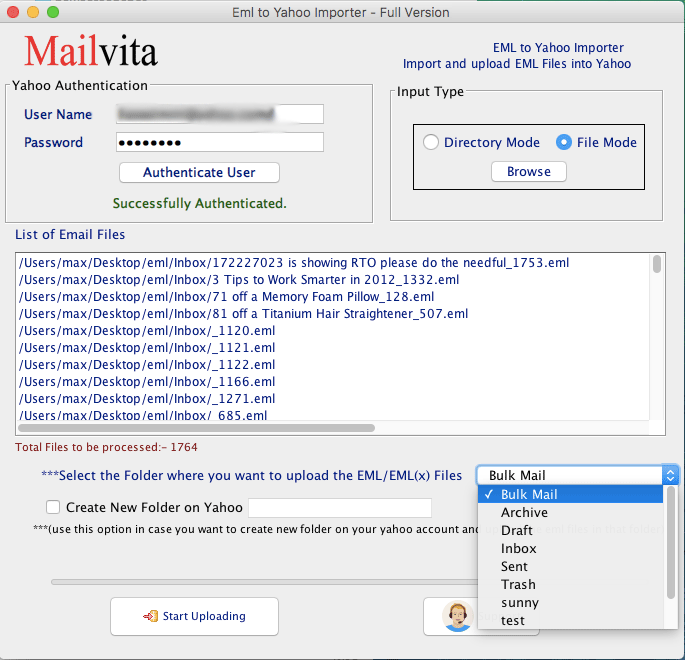 EML to Yahoo Exporter pour Mac est l’application qui résout tous ces problèmes pour importer EML sur un compte Yahoo Mail. Le logiciel spécialement conçu pour importer des fichiers EML dans Outlook très facilement sous Mac OS. Le logiciel est livré avec de nombreuses fonctionnalités avancées et a une note élevée, car l’application prend moins de temps. Le logiciel est complètement sécurisé et son interface utilisateur est très simple. Il fournit une migration de fichier illimitée sans perte de données. Avec l'aide de ce logiciel, vous pouvez importer des fichiers EML dans Yahoo Mail en un seul clic. Vous pouvez télécharger la version de démonstration gratuite de ce logiciel et importer des fichiers EML dans Yahoo Mail. Mais dans la version gratuite, vous pouvez importer 10 emails. Pour importer plusieurs fichiers, vous devez acheter le logiciel.